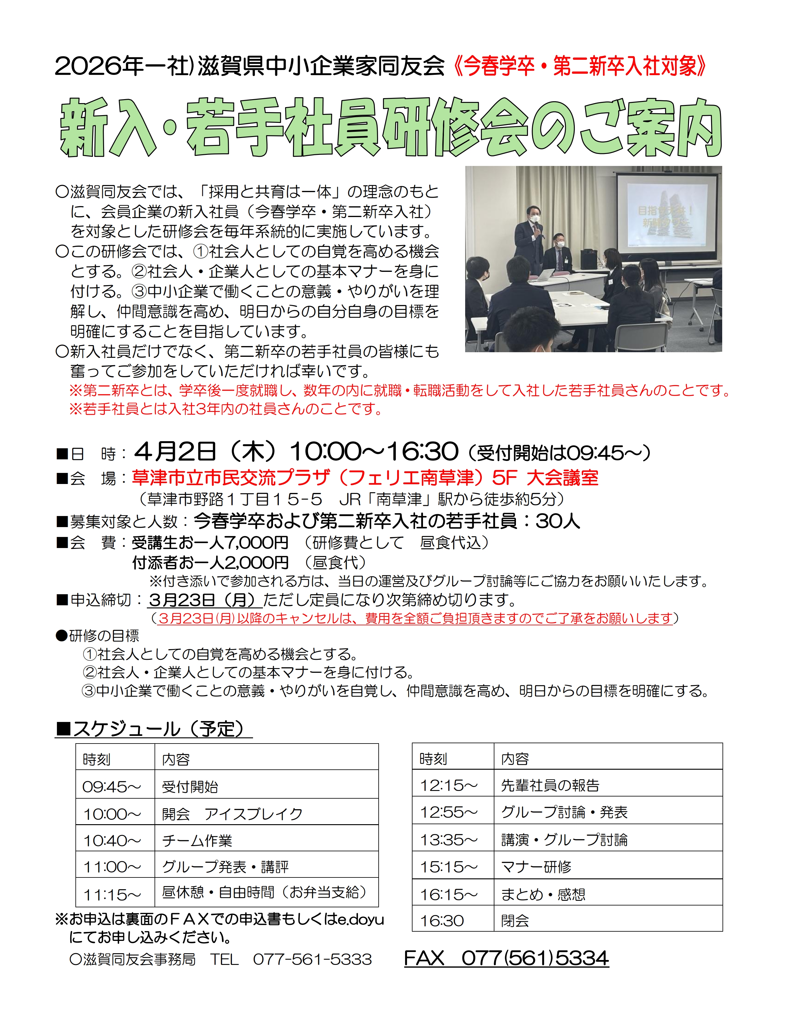 2026年度 新入・若手社員研修会のご案内(学卒入社・第二新卒入社社員対象)